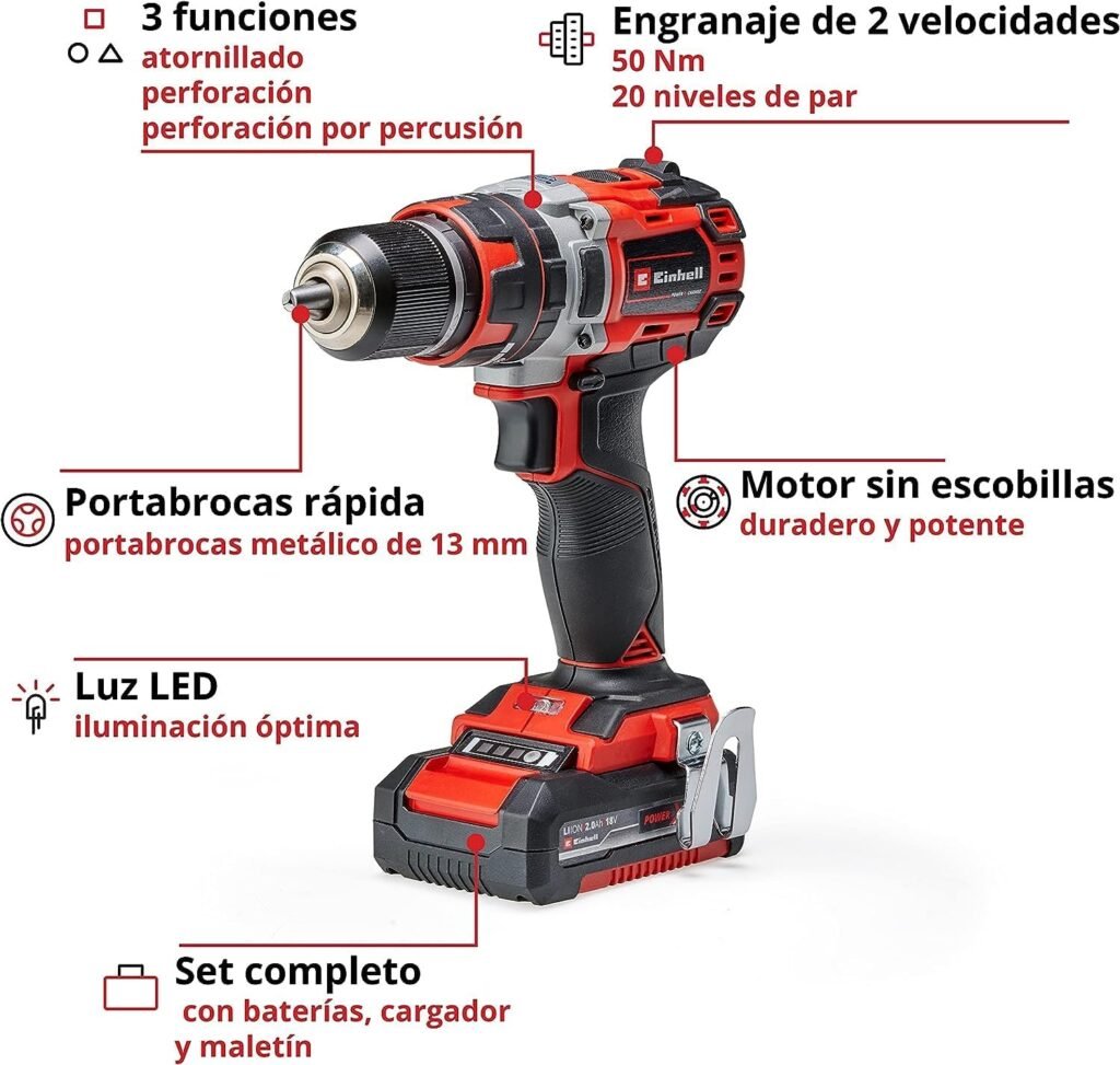 El Einhell TE-CD 18/50 Li-i BL juega en una liga muy interesante: no busca competir con los taladros más potentes, sino ofrecer algo que mucha gente realmente necesita.